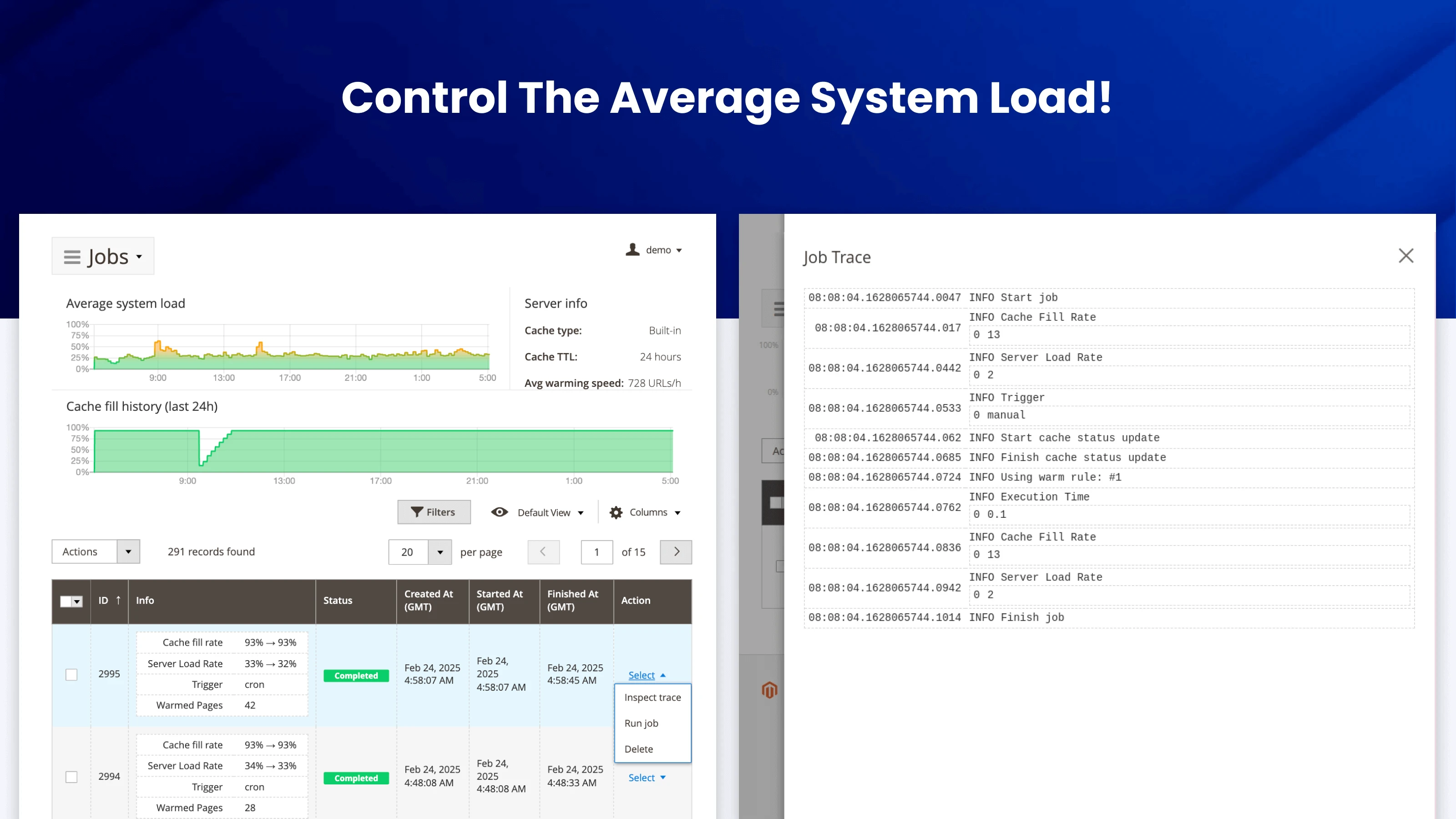 Balancing the server load is important for fast web page loading speed. Identify bottlenecks in the system load with the help of a graph offered by the Full Page Cache Warmer extension.