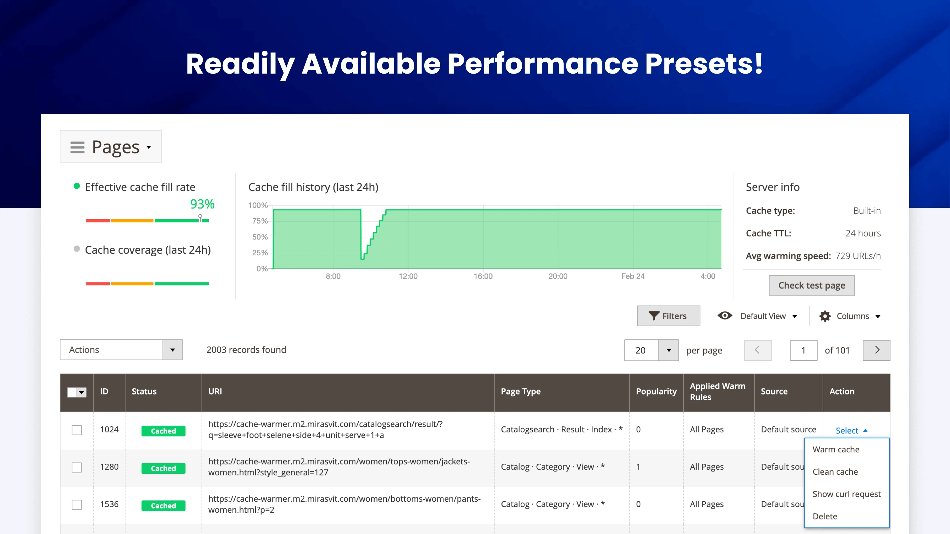 Our solution is fully automated and refreshes your store's cache automatically. No more worries about complicated manual settings, just specify which page types should be cached, and that's it!