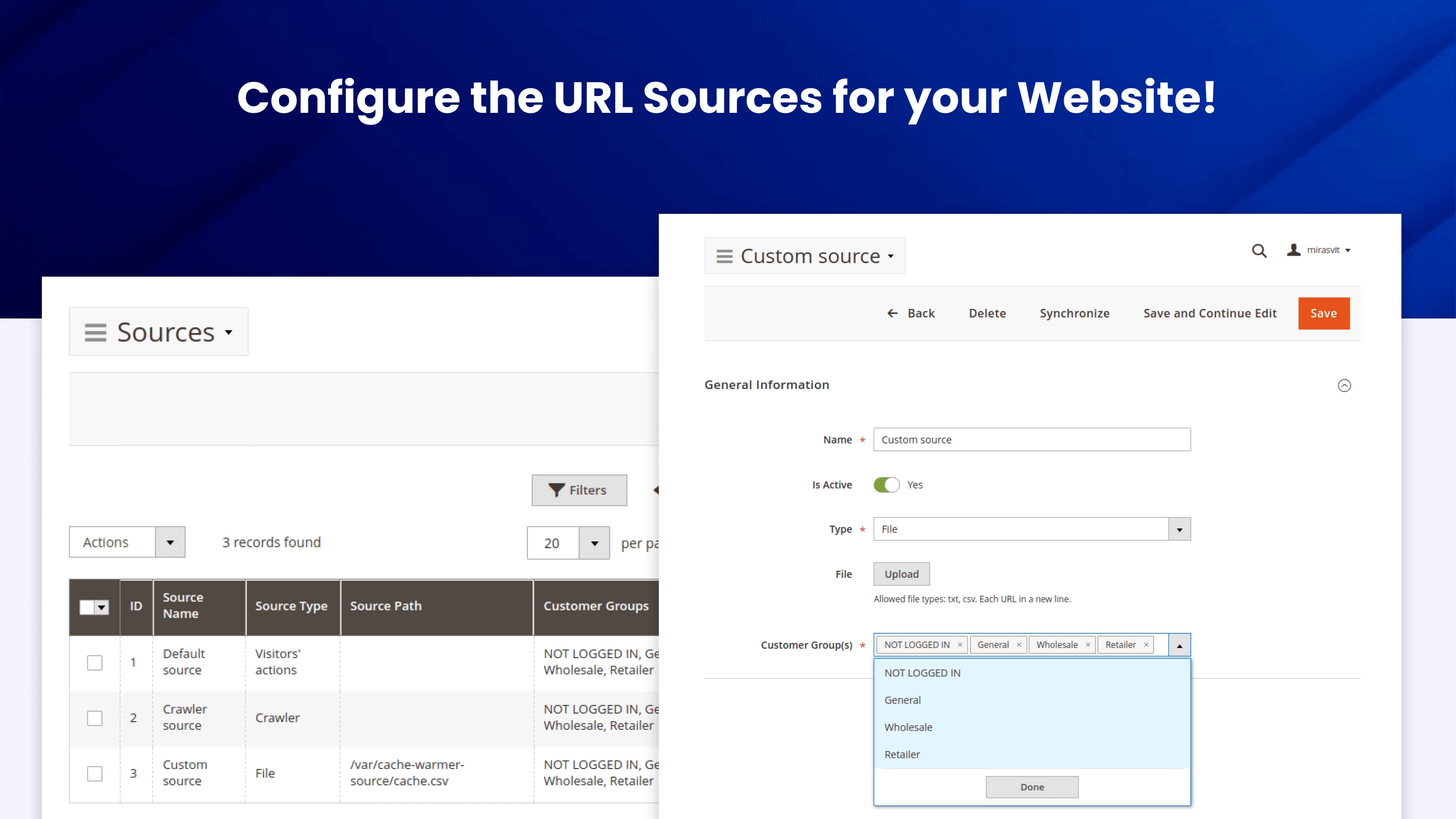 With a Full Page Cache Warmer extension, configure the cache warming rules depending on page attributes like customer group, page type, page popularity, page URL, product type, Store View, and cache triggering source. Flexibly combine those attributes in a cache warming condition that will help keep the cache updated for the most important pages and customers.