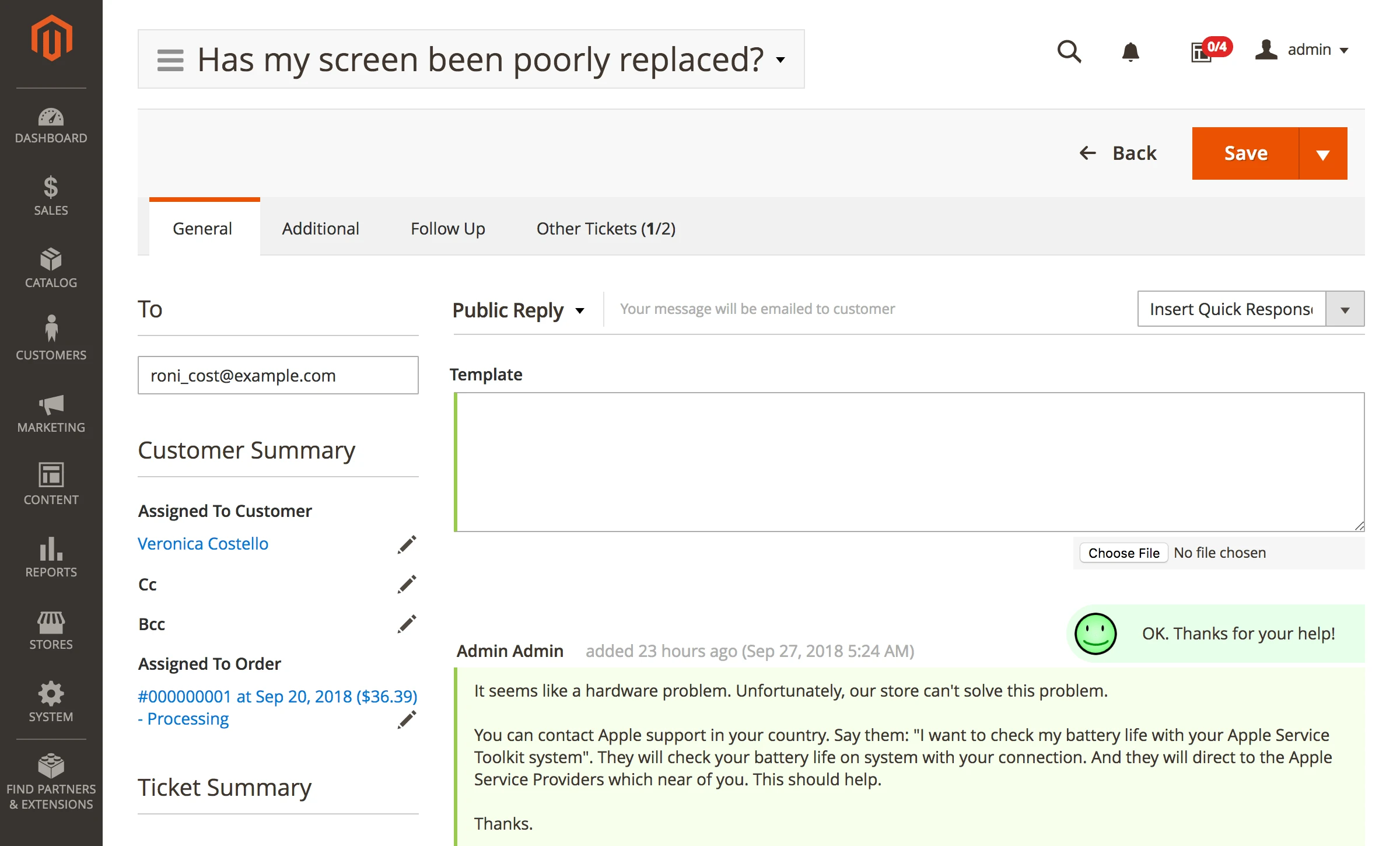 It is also particularly convenient to look at all ticket history on the same screen at a glance in the magento help desk extension.