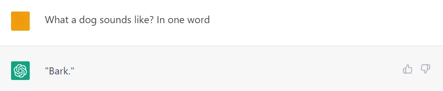 For example, when answering a sentence What a dog sounds like a person likely would not say tree or rain, he would answer woof or bark. Obviously a ChatGPT would be choosing from the same set of possible words, and indeed, the chatbot has chosen bark: