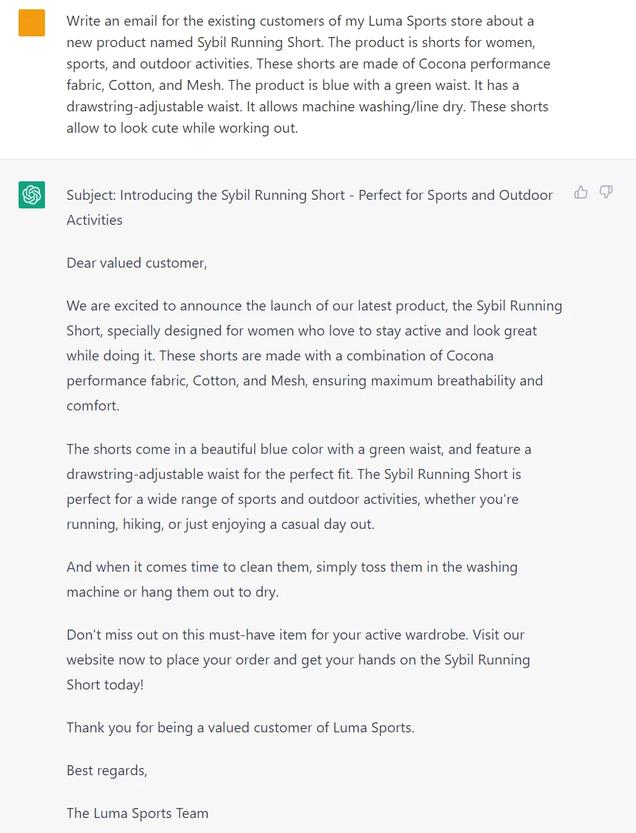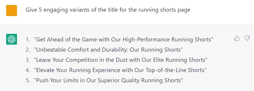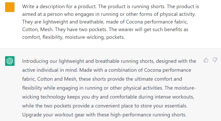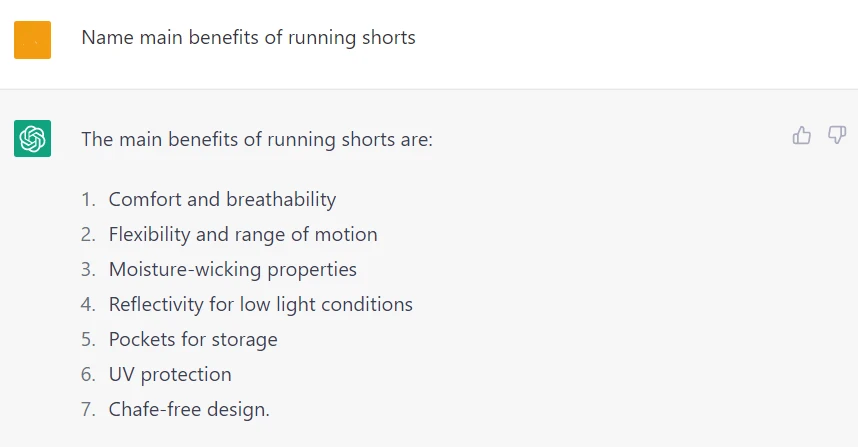 You may need to do product research first if you are writing a product description for a new item with an empty product page. ChatGPT can help you with that, but remember that its dataset is outdated. So such questions like "What is the bestselling running gear in 2023" are useless: