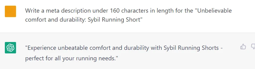 Search engines mark autogenerated content as spammy and lower SEO ranking for the websites that use such content. Therefore, rewrite the meta title and meta description obtained from ChatGPT in your words so the search engine cannot identify the text as autogenerated.