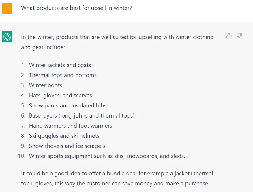 You can use the power of ChatGPT to suggest relevant products for your cross sell or upsell promotions.