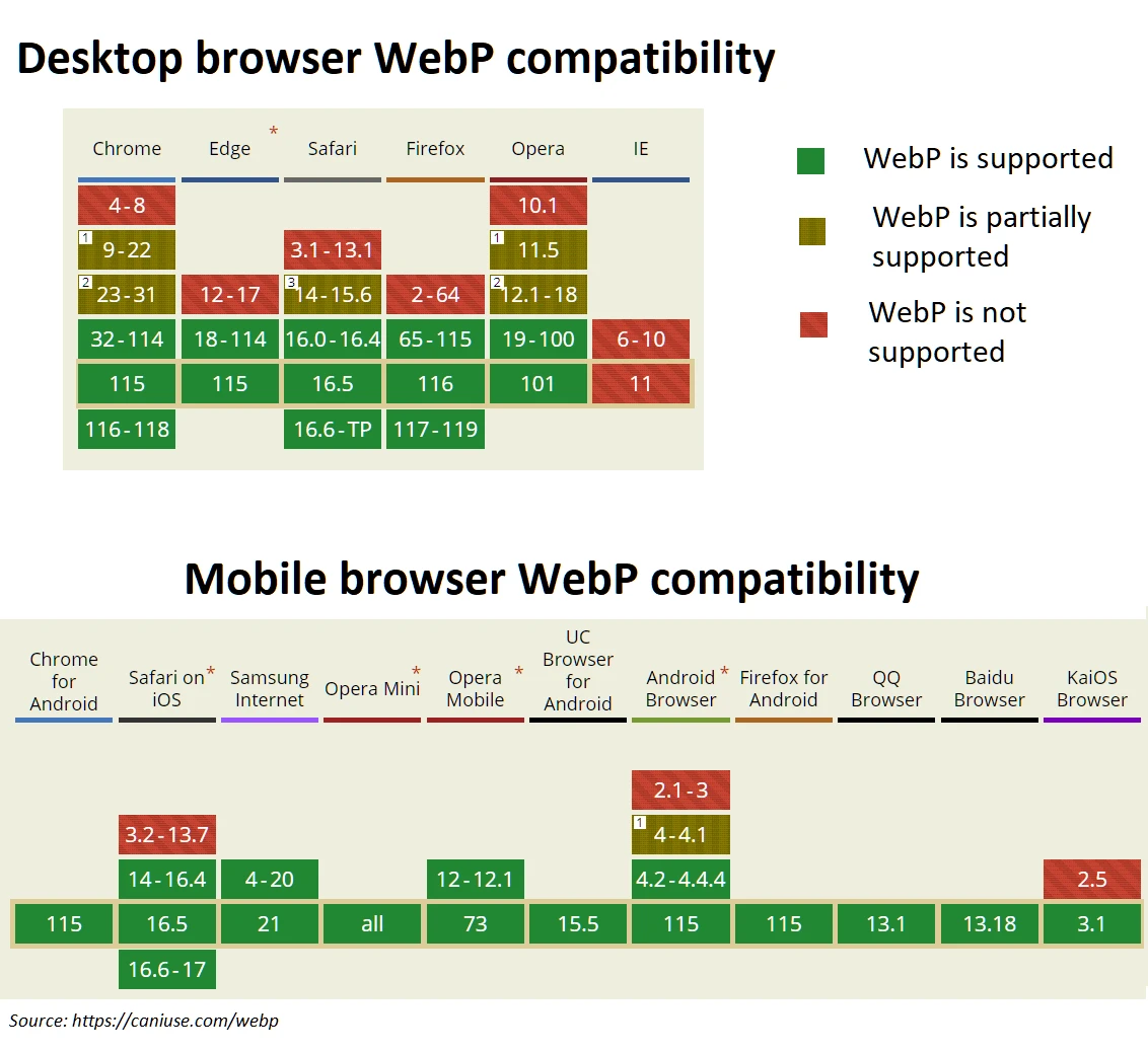 Browsers that are unable to display WebP images are very old browsers, that have been released prior 2010 do not support WebP image format since it was not yet publicly released. Since less the usage if such legacy browser as of 2023 is less than 4%, it is better to concentrate on modern browsers.