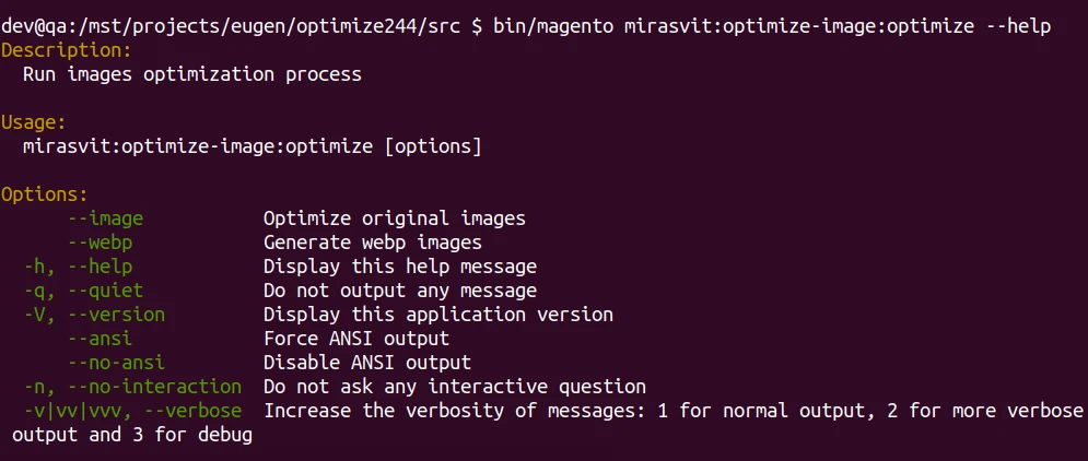 Previously there were two commands for processing the images. You could launch a process to convert original images to WebP with bin/magento mirasvit:optimize-image:webp command. Or you could launch a process to optimize the original images to take less disk space with the bin/magento mirasvit:optimize-image:optimize command.