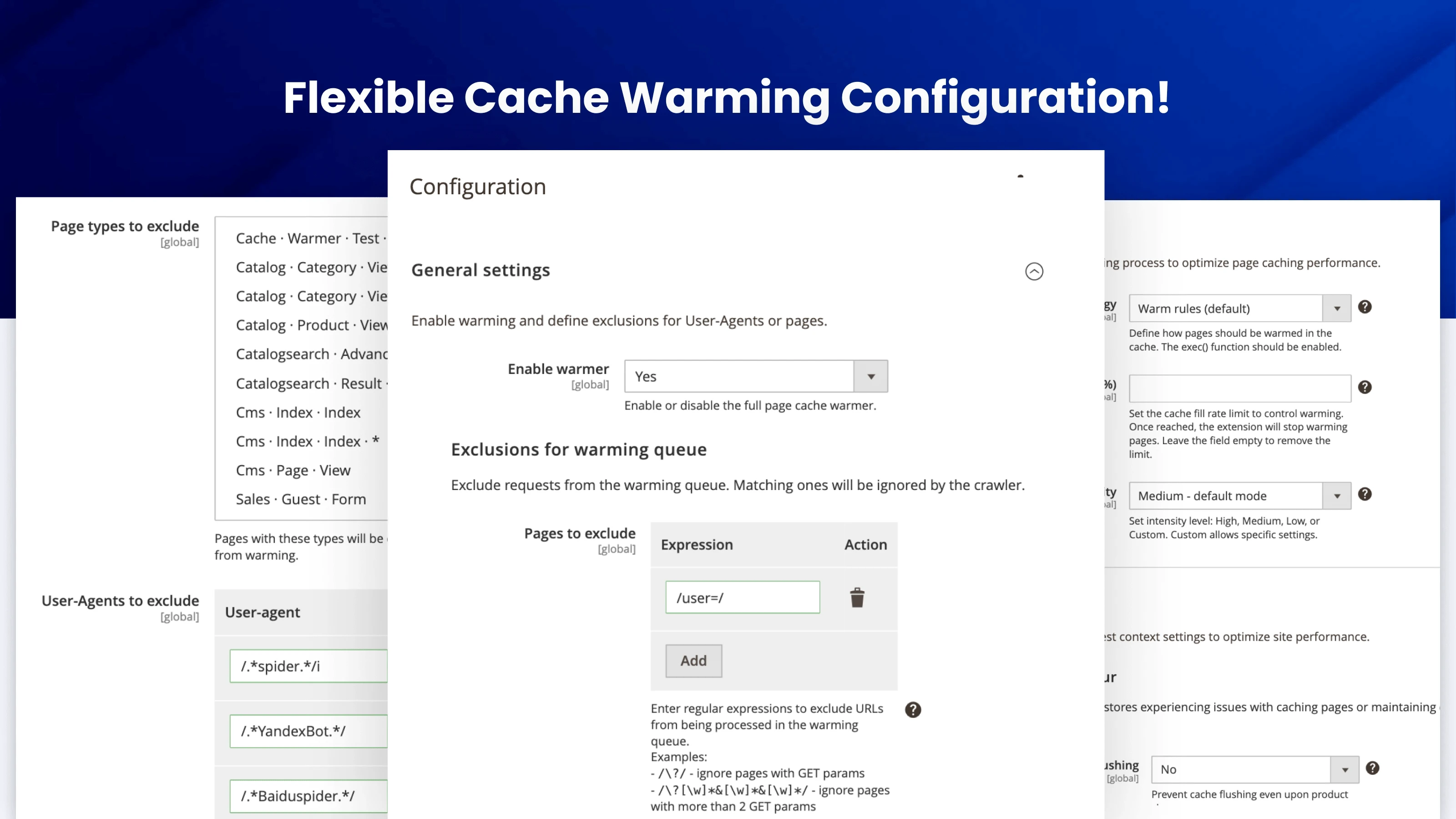 Configure the cache warming rules and flexibly combine them in a single condition for cache warming. Use it to keep the cache updated for most important pages and customers.