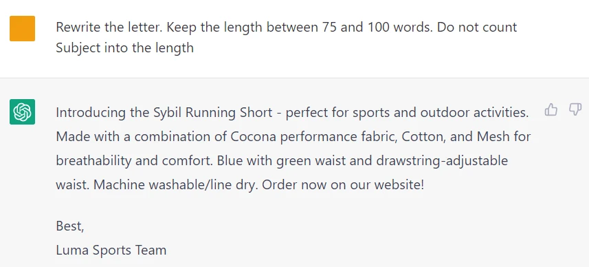 Now the output is 81 words, but that’s with the subject line. Let’s ask the ChatGPT to exclude the subject line from the limit: