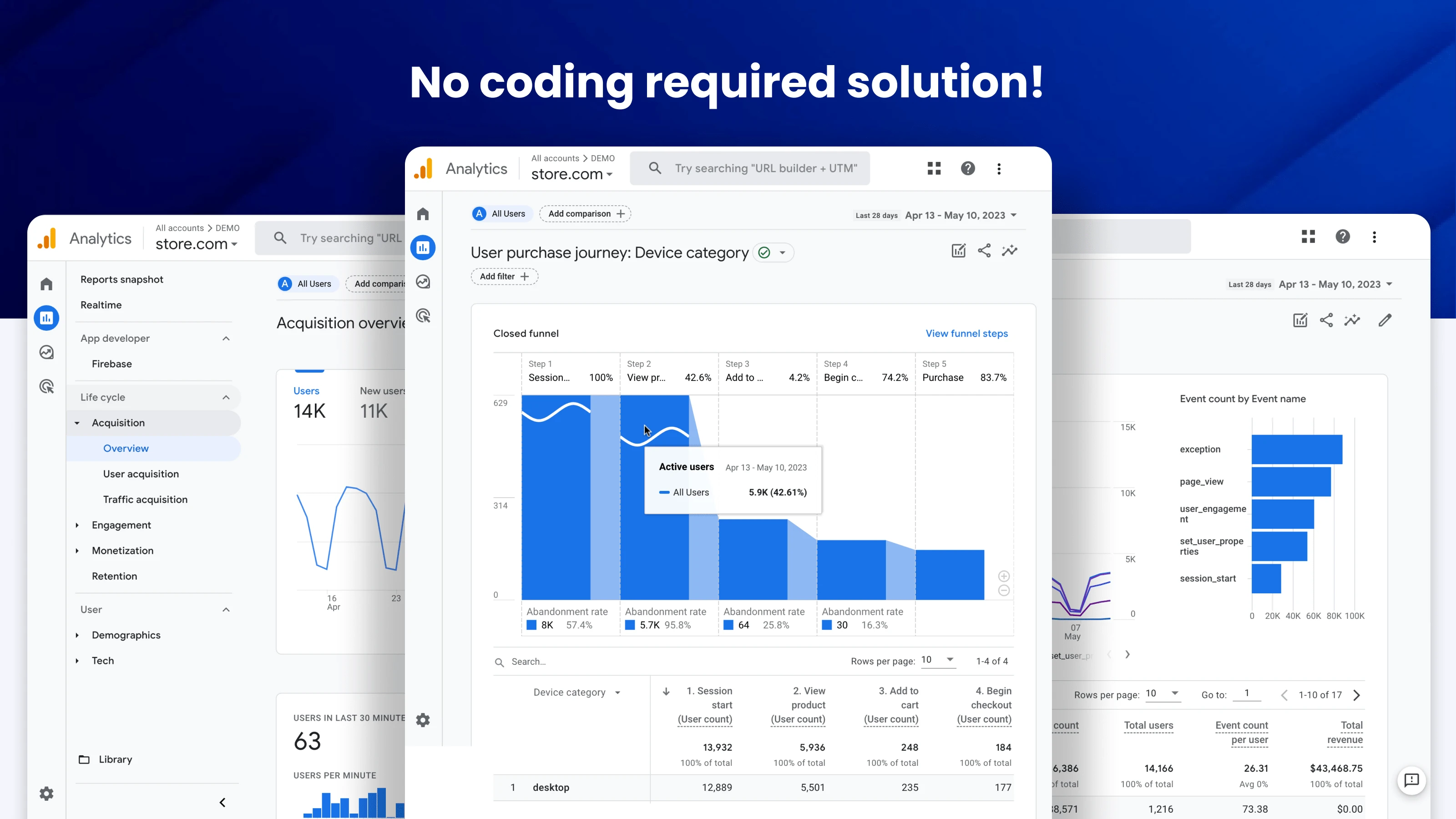 Get in-depth reports on your customers' behavior while they are shopping using our Google Analytics 4 with GTM extension.