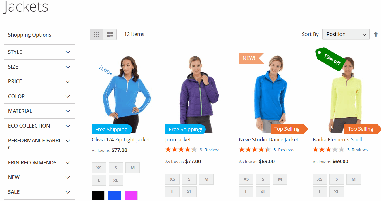 These labels can be utilized to draw attention to important information like promotions, discounts, and product ratings. For example, labels can show a customer if a product is new, on sale, or only has a few left in stock. Alternatively, labels may display information customers value most, like brand, material, packaging weight or volume, etc.