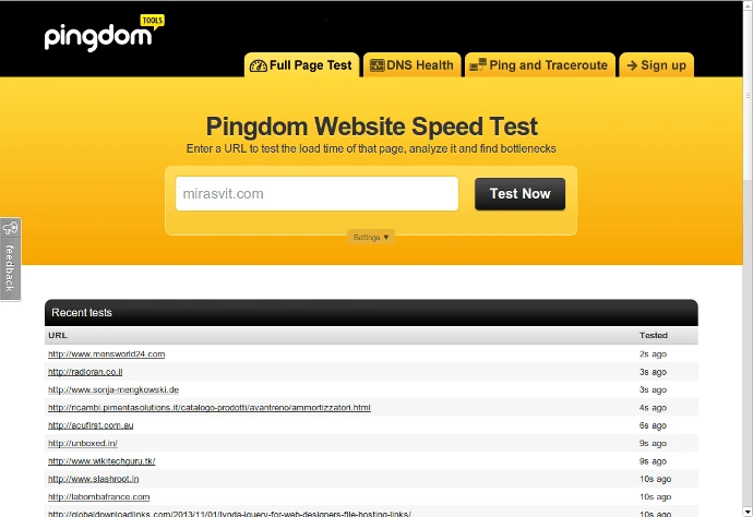 Another way to check out webpage load time comes with on-line resources, say, Pingdom Tools. Opening the webpage, enter the name of your e-store in the address field and just click – Test Now, and in a few seconds they come up with results. Have a look at the picture.