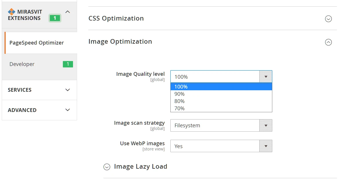 In both cases images are processed according to the Image Quality level that is located in Stores > Configuration > Mirasvit Extensions > PageSpeed Optimizer > Image Optimization.